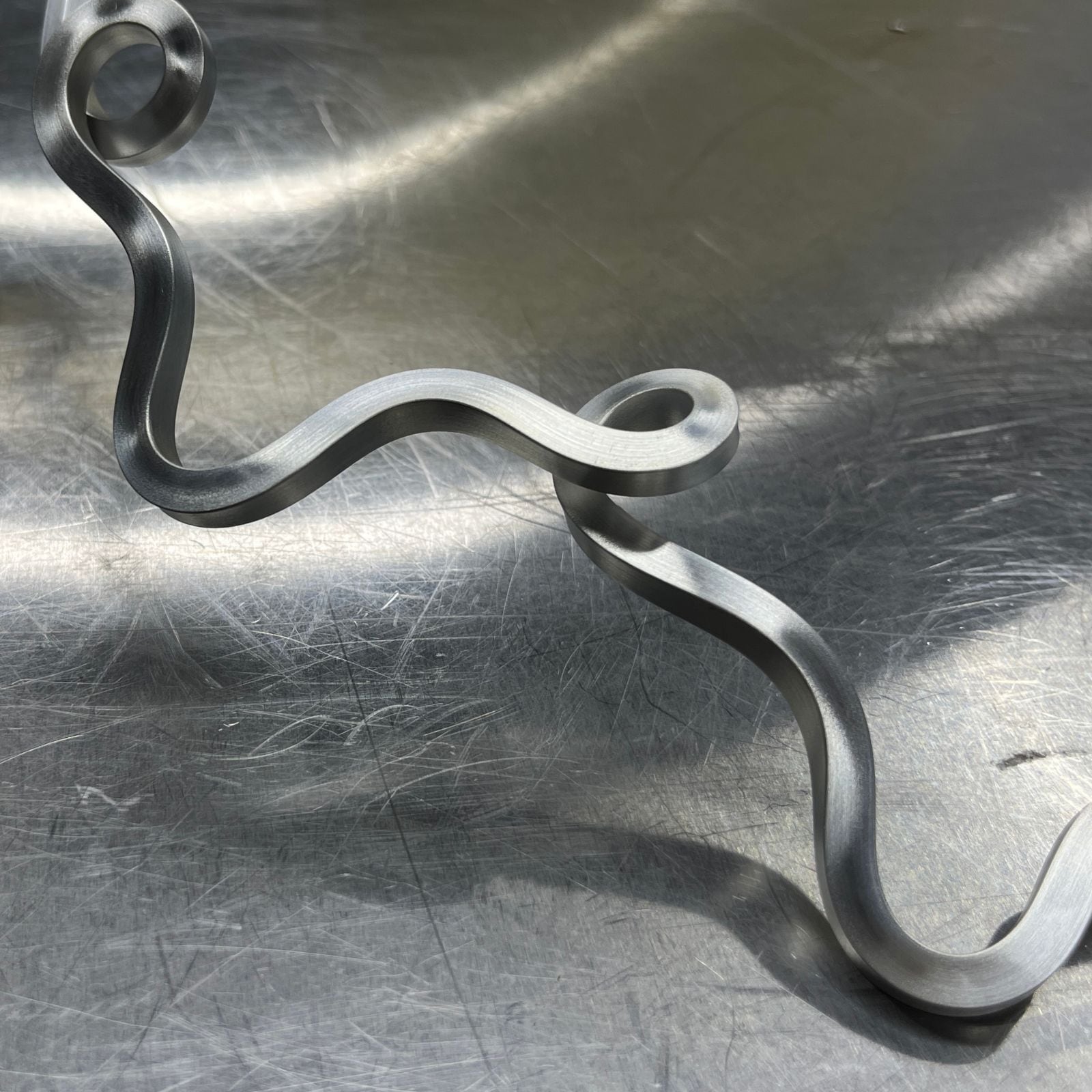 金属の硬くて無機質なイメージとは違う、やわらかな”うねうね”としたカタチ。